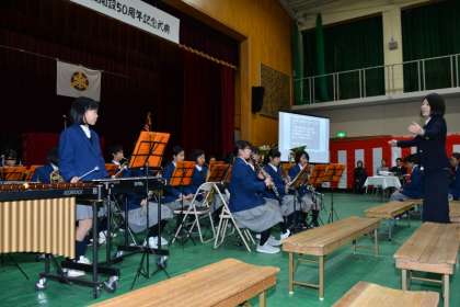 来賓祝辞に続いては、吹奏楽部による記念演奏です。