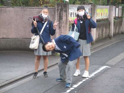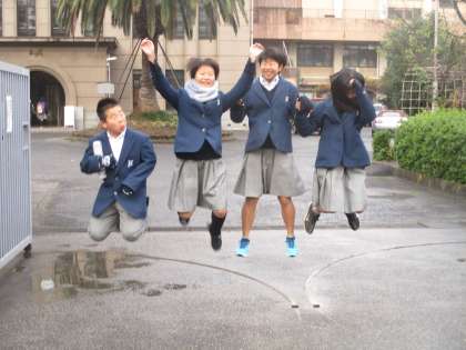 ちょうど通りかかった同級生の女子たち。快く了承してくれて一緒に飛びました。