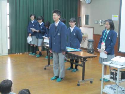 図書委員会の人たちが、今回は二条城北小学校の低学年に対して絵本の読み聞かせを行いました。