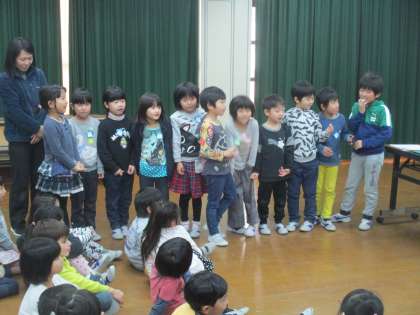 こちらのグル—が選んだ絵本は,「パピプぺポ」だけで作られた言葉で展開していきました。意味はよく分からないのですが、何故かよく笑える物語でした。