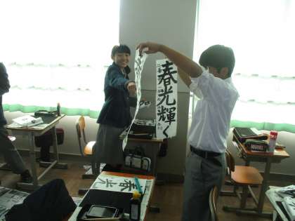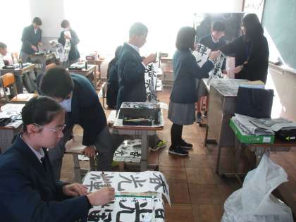 2組は国語。書道です。