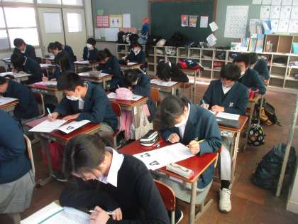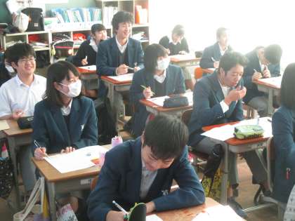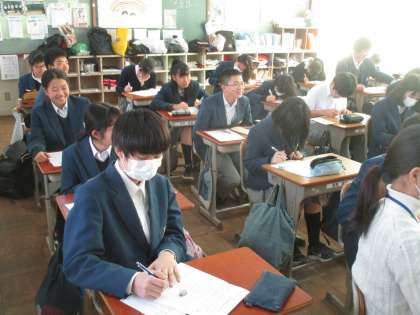 認知症に関する教材を使っての授業です。生徒の中にはおじいさんやおばあさんのそんな状況を知っている子も居ると思います。