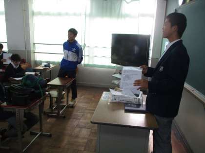2組では生徒の進行で終学活が上手く進められていました。