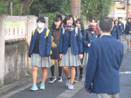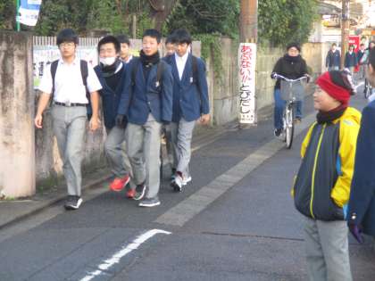 早くから校門に立って生徒を迎えている子たちに、登校してくる生徒も声を掛けます。