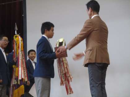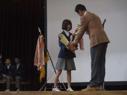 優勝候補筆頭でしたが、無念の3位でした。その賞状を受けるのが小笹君、副賞を受けるのは谷川君です。