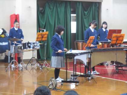 伝達表彰に続き、明後日に行われる吹奏楽部のアンサンブルコンテストに向けて、本校の代表になったチームが曲を披露しました。