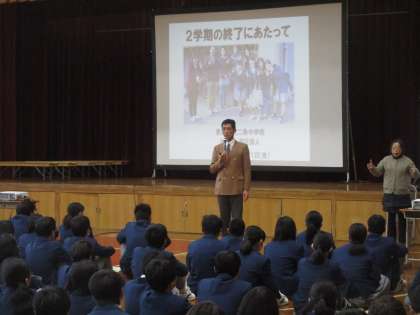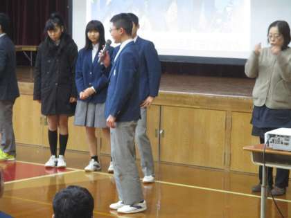 学校長の話の後は、これも恒例になりましたが、3年生が感想や決意を述べます。
