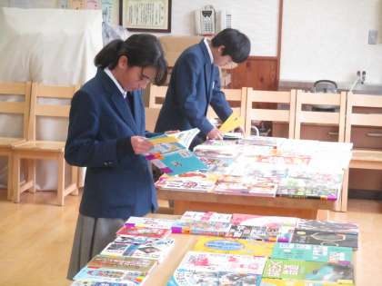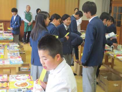 昼休みには6組と2年生の本好きの人たちが“いきいき交流ルーム”に来て購入してほしい本を選んでいました。