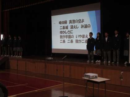 本部役員が校歌を歌しました。
