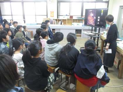先生の説明を聴きながら色々な面白い絵を鑑賞し、意見や感想を述べ合いました。