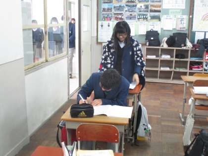 廊下で他クラスの友達と会話を楽しんで知る人たちも少なくありません。
