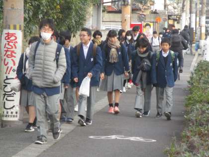 バレー部のメンバーは、今日も揃って元気に登校してきました。