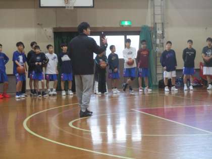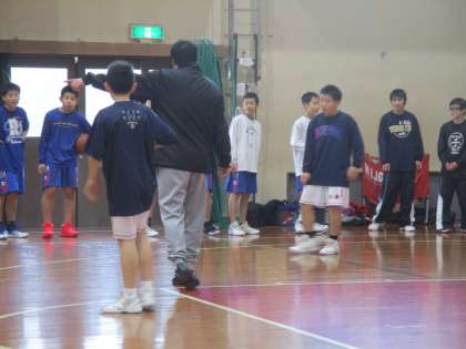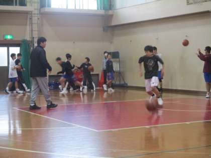 男子バスケットボール部は市内の中学校を招いて合同練習です。