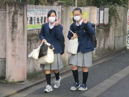 生徒の登校時間帯には雨がポツポツト落ちて今いましたが、天気予報によるとこの後は回復傾向だということです。