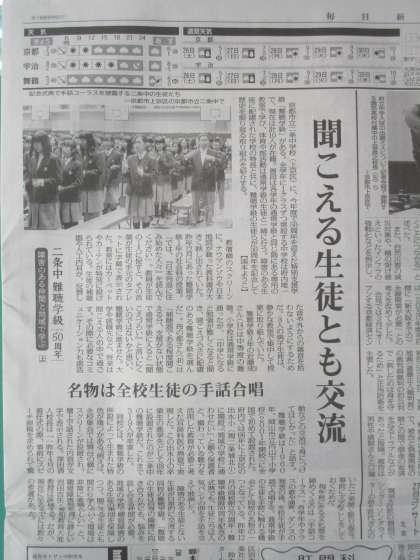 一昨日、昨日と本校のことが新聞に報道されましたが、今朝の毎日新聞にも掲載されました。なかみは「創立70周年・難聴学級開設50周年記念事業」についての難聴学級に関する取組が中心です。