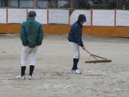 グランドの状態が悪く、何とか練習が出来るように整備しているところです。