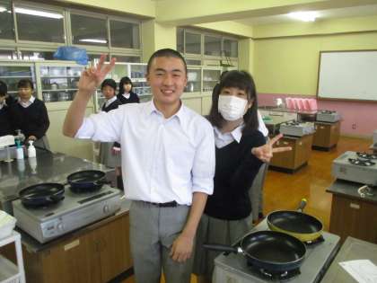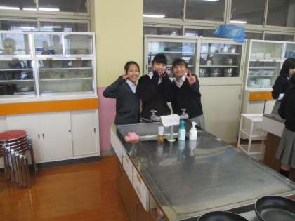 今日は3年で「調理実習」があるというので注意していました。3組の授業へ行くと、既に食べ終わって後片付けの状態でした。ざんねん!