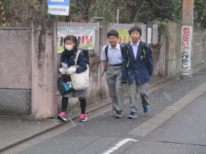 突然激しく雪が降り出し、登校してくる生徒たちも驚いていました。