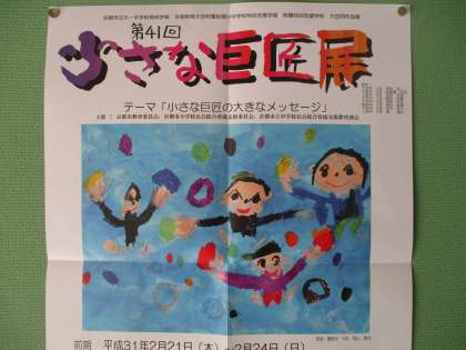 下の写真は来月の開催される全市の育成学級に通う児童生徒の作品展「小さな巨匠展」のポスターです。これは全市の全小中学校に配布されています。