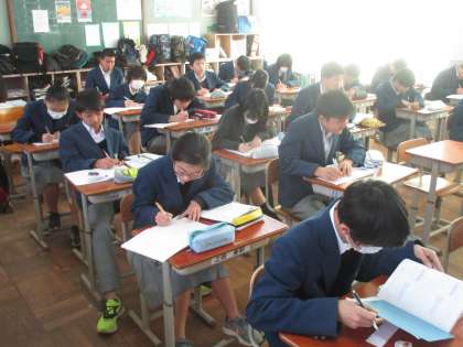 1組は社会。懐かしい映像「ルーツ」を使って、アメリカの黒人差別の問題について考えさせていました。