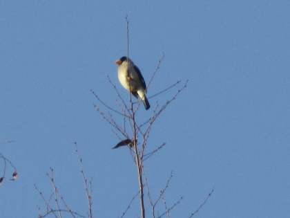 8時前ごろから校内の森の木に何という鳥でしょうか、やってきて美しく大きな声でさえずっていました。