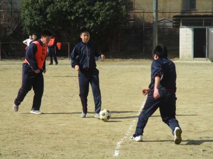 サッカーには先生も入って頑張っていました。