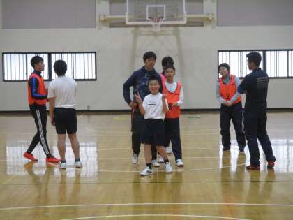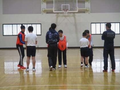 6組は体育。いつもの通り先生が入って楽しくバスケットボールです。