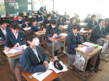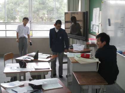 休憩時間に5組の教室へ行きました。一人が職員室へ健康観察表を出しに行っているということでした。
