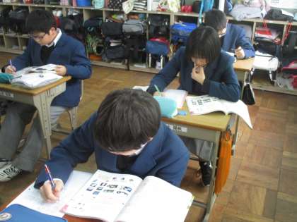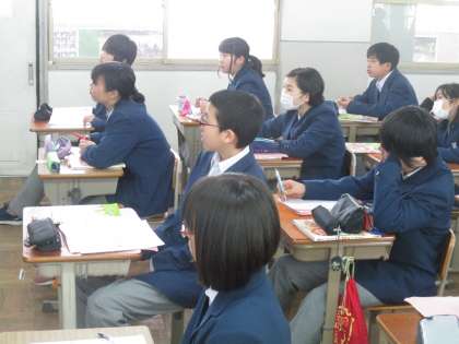 採寸の仕方について学んでいました。中学校の制服を採寸したとき、わざと大き目を注文したはずという先生の言葉に妙に納得していました。