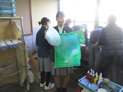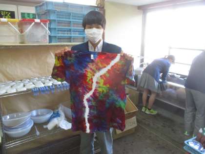 こうして染め抜いたTシャツに、今切り抜いている絵を付けて完成するようです。