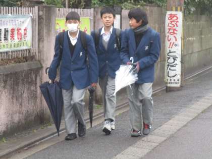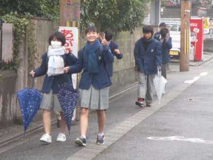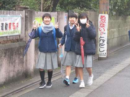 さて、登校時間帯にあいにく雨が降ってきました。特に今日から「学年末テスト」の1・2年生は傘を差し手勉強しながらの登校となりました。