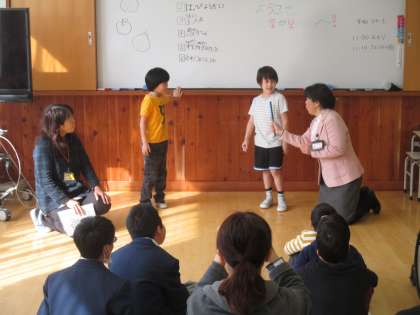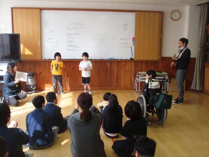 校長先生のインタビューに一人ずつが応えます。そして、みんなで給食の歌を合唱しました。