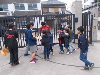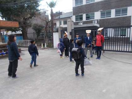 今日は正親小学校へ行って小学生の児童を相手に挨拶運動を行いました。