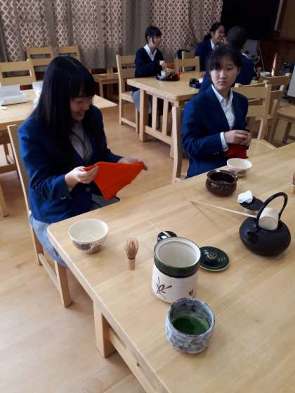 来月3年生は卒業茶会を,学校はさくら茶会を催します。お茶会の練習をしっかりすることができました。学校運営協議会のお母さんにも参加していただき本当に助かっています。