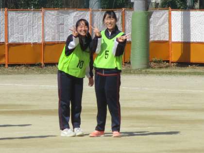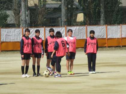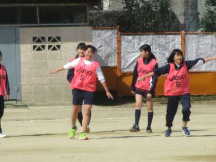 1・2組の体育、女子のサッカーです。大きないい声が響いていました。