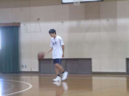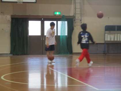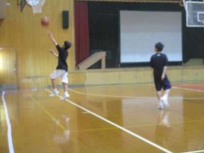 講堂では男子バスケットボ−ル部の練習が始まりました。