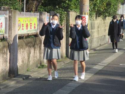 それでも、カメラに気づくとポーズを決めるのを忘れません。楽しい生徒たちです。