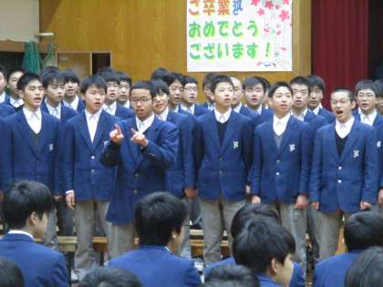 さあ、次はいよいよ明日の卒業証書授与式です。昨日の「送る会」を見て、厳粛な中にも感動的な卒業式になることは間違いないです。卒業証書授与に続いて、学校長、ご来賓、在校生代表、卒業生代表が、其々に卒業生やその保護者の方に向けた思いを述べます。また、国歌、校歌、式歌、蛍の光によって会場の雰囲気を盛り上げます。更に、今年も式後には保護者代表による謝辞と卒業生による「感謝の歌」の合唱があります。プログラムは厳選されています。これらを一つひとつ心を込めて進行していくのです。何度も熱いものが込み上がってくる場面があるでしょう。厳粛で感動的な卒業式を作るのはその場に居る人たち全員です。