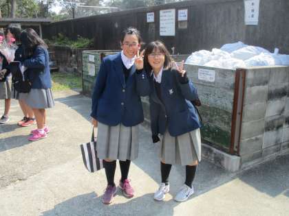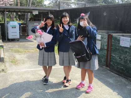 卒業生が最後の学活を終えて教室から出てくるのを下級生たちが待っています。