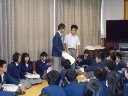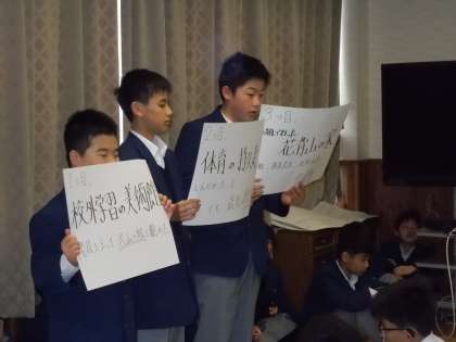 1時間目は1年生が学年集会を行いました。1年間のクラスの振返りと各専門委員会の代表よりのコメントもありました。