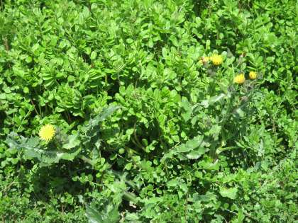 庭に咲いたタンポポの花と一緒にご覧ください。