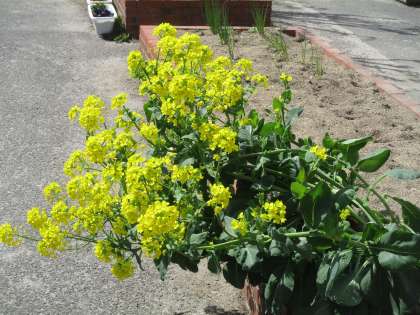 卒業式に植えたプランターの花々が、この暖かさで勢いよく育ってきました。