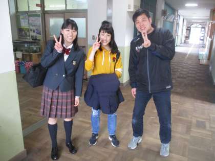 先日卒業した人が高校の制服を着てやってきました。