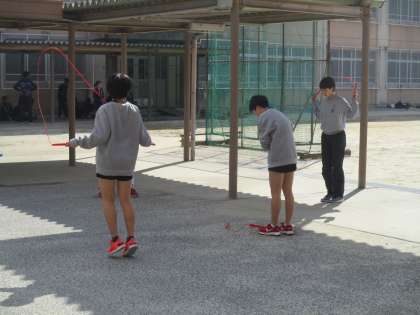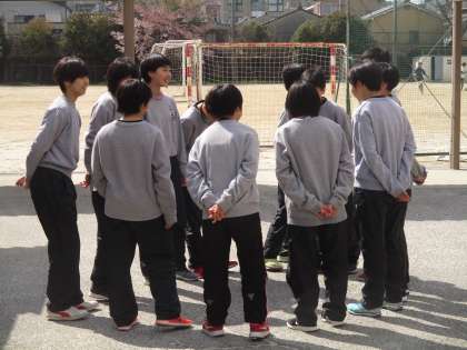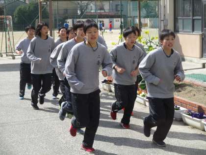 バレー部は練習時間帯が後半らしく、講堂が空くまでの間、中庭でトレーニングです。