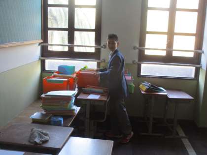 生徒会本部の人たちが、入学式や新入生を迎える会をするにあたって、その準備にあたってくれています。