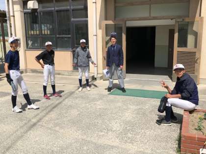 野球部は練習を終えて、残った生徒が顧問の先生と話をしているところです。