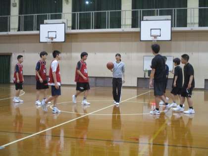 男子バスケットボール部は2つのチームに若えて試合形式の練習です。