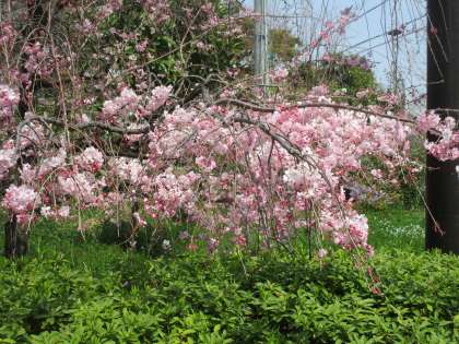 校門を入ったところ右側にある枝垂れ桜も、満開となりました。