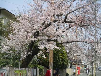 校門の桜は九部咲き(まだつぼみが残っています)で、明日の始業式と明後日の入学式を待ってくれています。