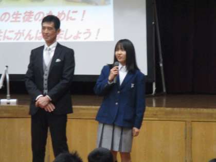 いつもの通り、学校長の話を聴いて、3年生に感想や決意を述べてもらいました。